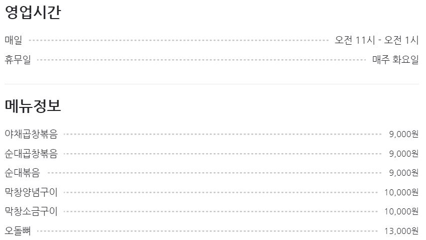 ■ 불광 먹거리 곱창 메뉴 가격 정보